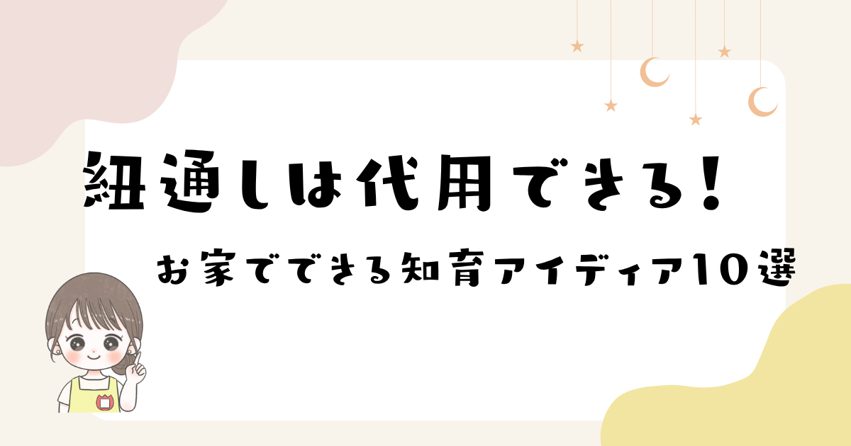そんなママ・パパに向けて、この記事では紐通しの知育効果と家にあるものでできる代用品アイデアをまとめました。市販の知育玩具がなくても、おうちにある物や100均アイテムで十分楽しめます。